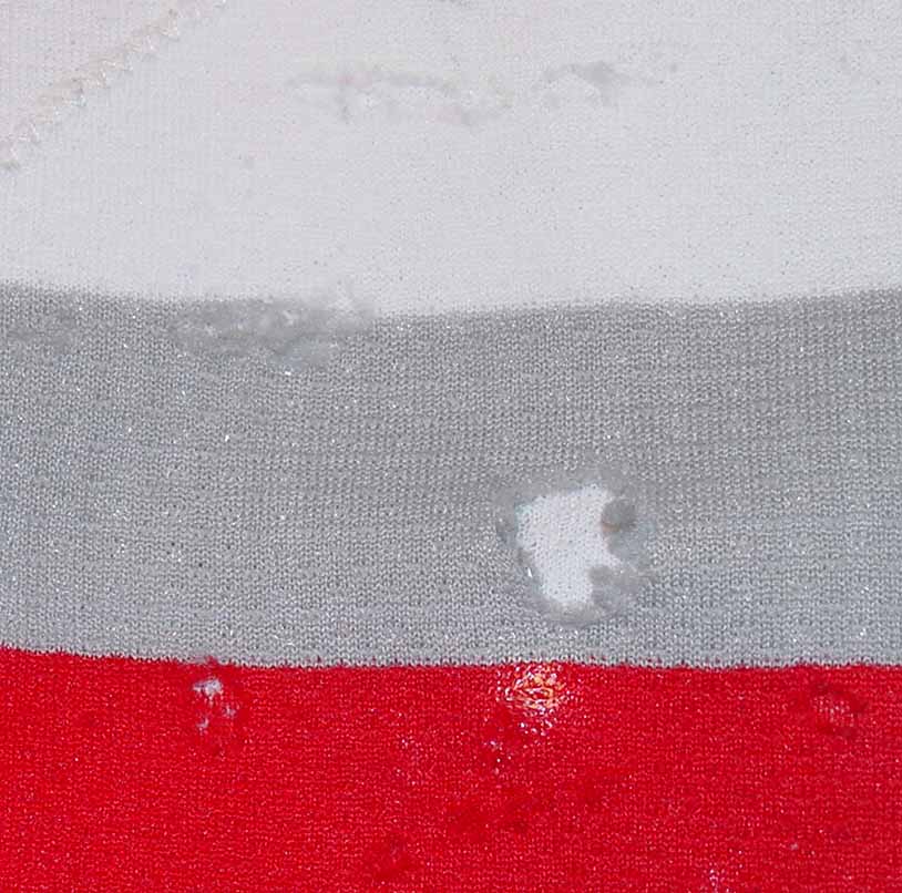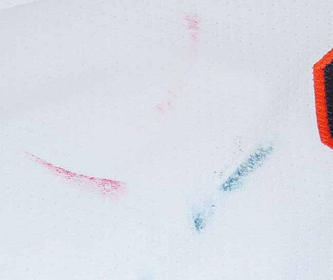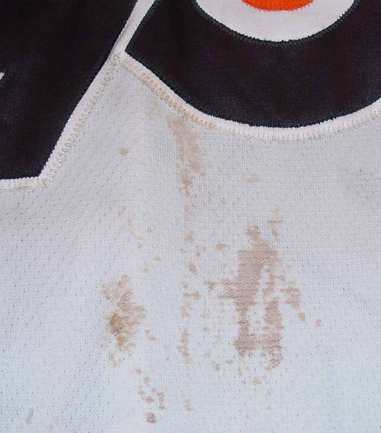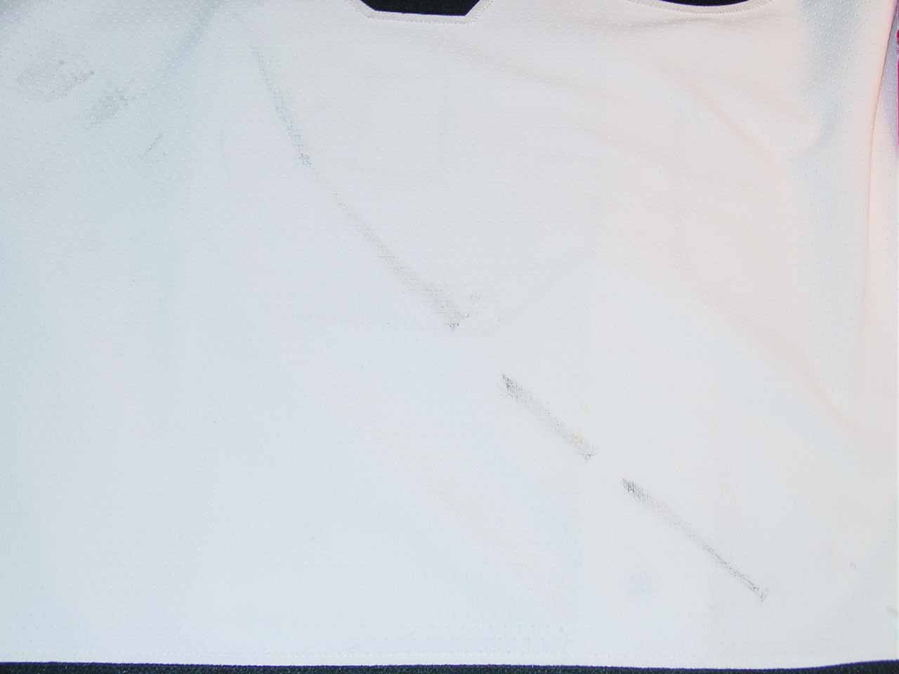 Wear is not just what happens on the ice but off. The jerseys will get washed and the jerseys will show signs of this. Below is a list of some types of wear you will find in a game jersey.