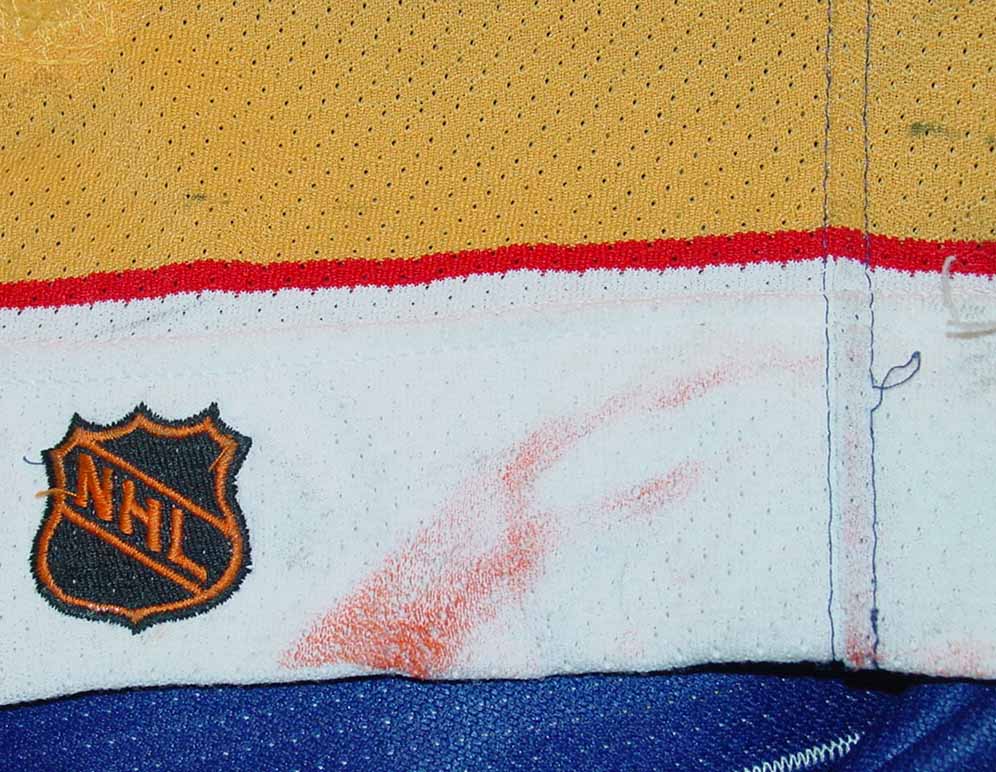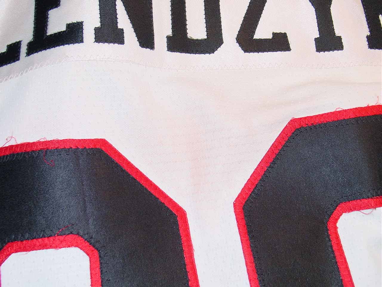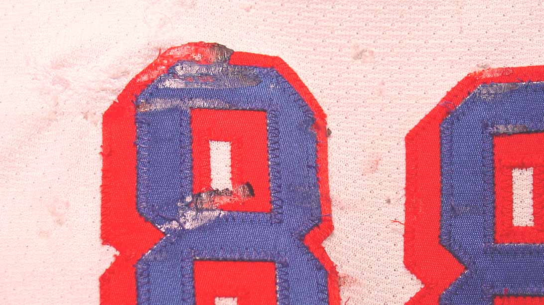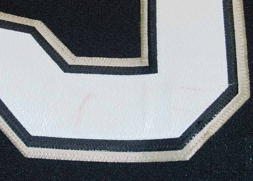 There are many different signs of wear that you will find on a game worn jersey. Understanding game wear is perhaps the most important aspect in authenticating a jersey. Again, remember to do your homework. If you can find out the year of the jersey and how many games the player played, that will help in assessing the amount of wear on a jersey.