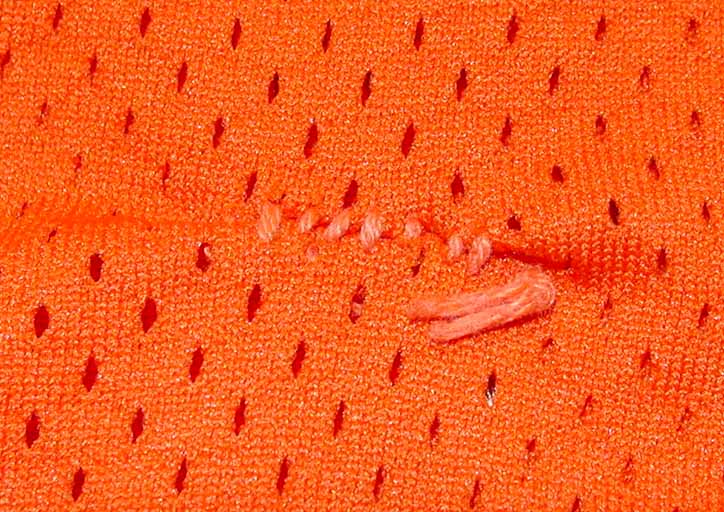 Tears & Holes – Jerseys can get tears and holes. This can occur from regular game play or from fights or just clutching and grabbing during a skirmish. hole tears.jpg (94881 bytes)